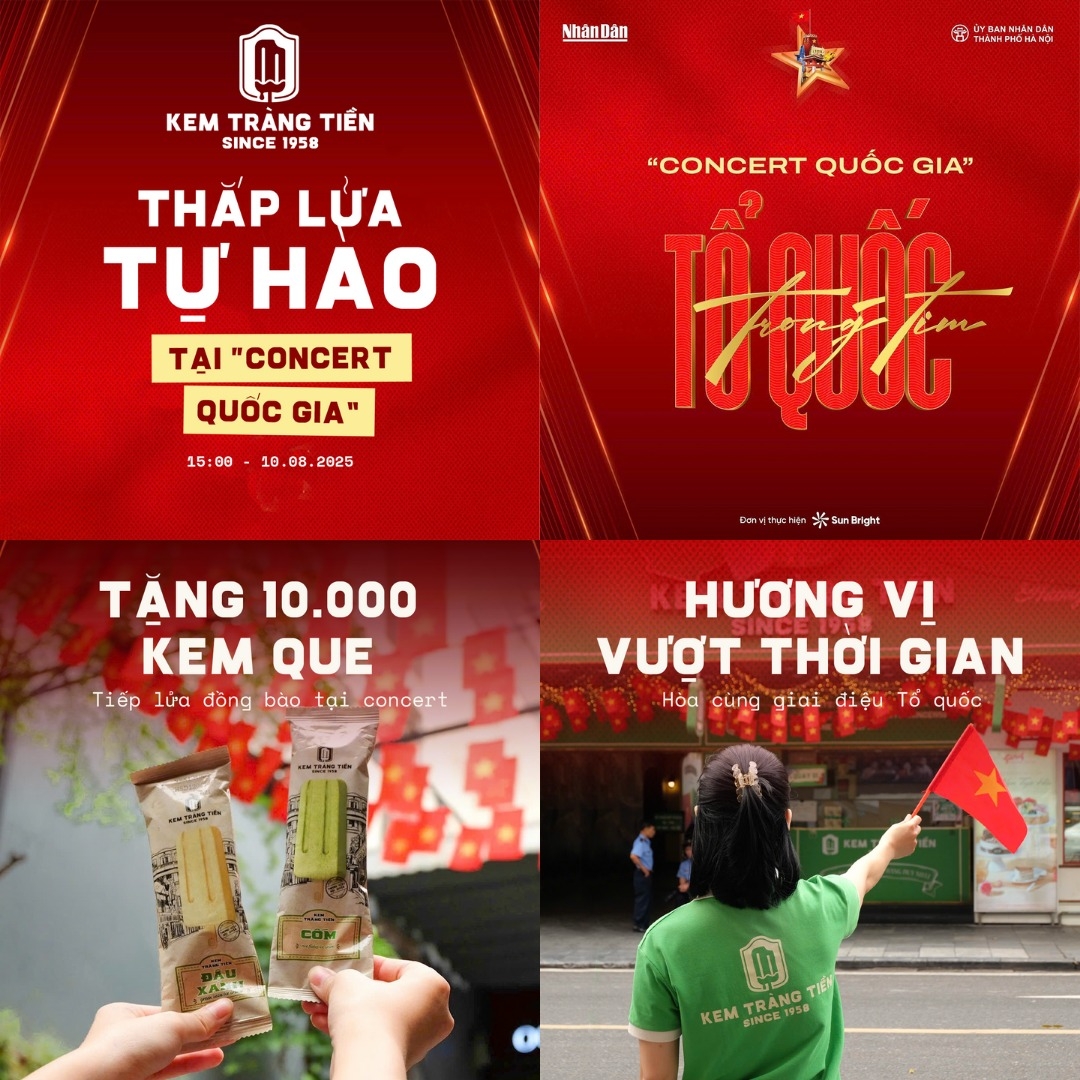 Ngày 10.08.2025, Kem Tràng Tiền tự hào đồng hành cùng Concert quốc gia “Tổ quốc trong tim” – chương trình đặc biệt do Báo Nhân Dân tổ chức, hòa chung không khí hân hoan kỷ niệm ngày độc lập của dân tộc.