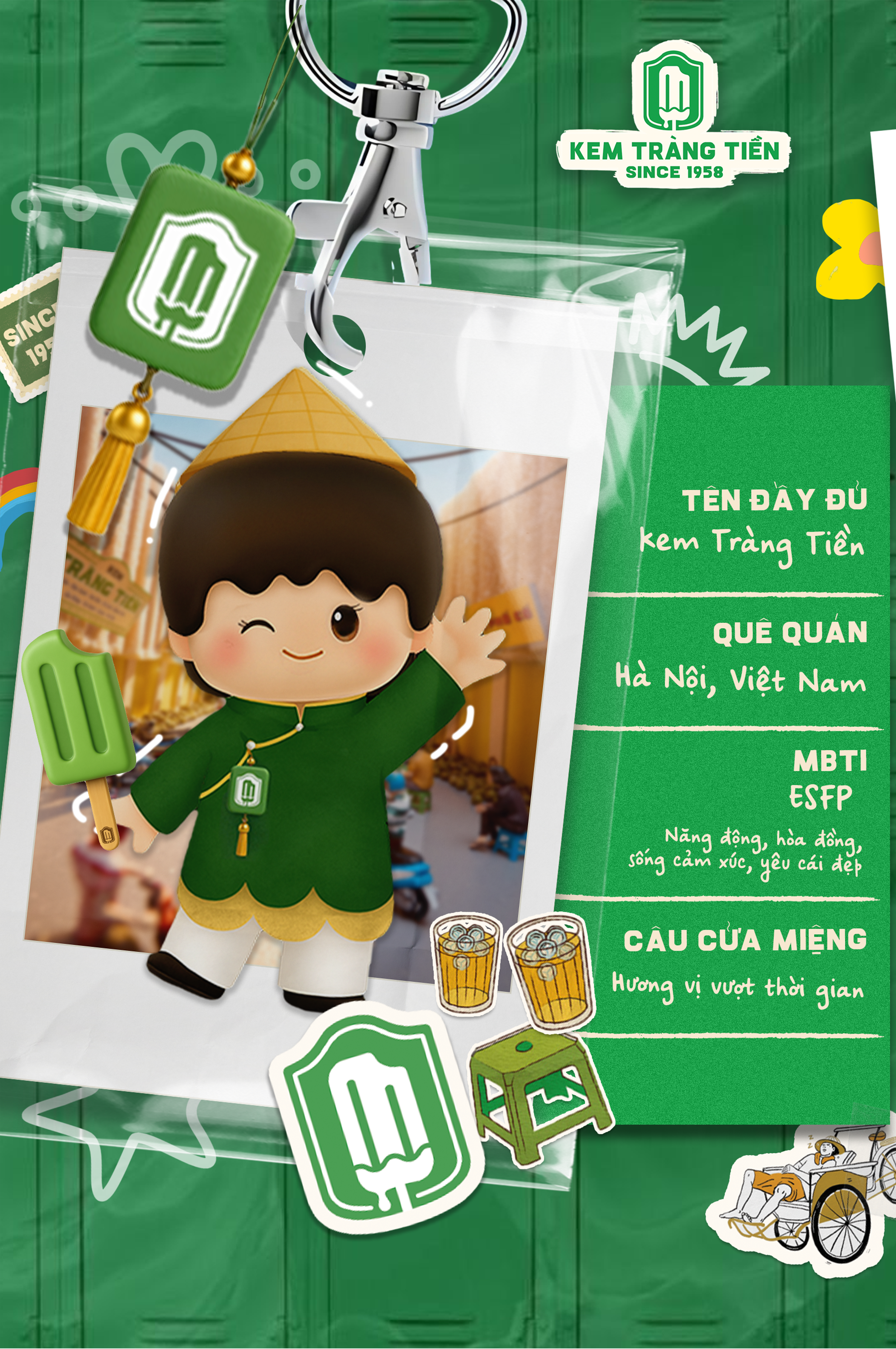 Từ nay, nhân vật biểu tượng này sẽ đồng hành cùng đại gia đình Kem Tràng Tiền trên mọi hành trình, trở thành cầu nối gắn kết thương hiệu với những trái tim yêu mến hương vị quen thuộc. Nếu bạn cũng đã “say mê” nét đáng yêu và tính cách ngọt ngào ấy, đừng quên gửi một lời chào thân thương đến bé nhé!