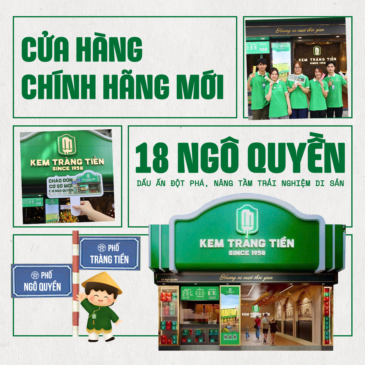Năm 2025 đánh dấu một bước chuyển mình quan trọng khi Kem Tràng Tiền chính thức ra mắt Cửa hàng chính hãng tại 18 Ngô Quyền. Không chỉ dừng lại ở một điểm bán, đây là không gian di sản đột phá, nơi Kem Tràng Tiền kể câu chuyện di sản bằng ngôn ngữ của kiến trúc hiện đại.
